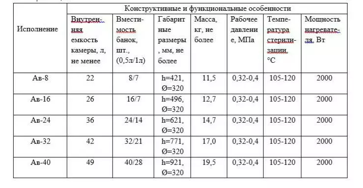 Емкость (количество банок): банка 0.5л. – 8 шт.;