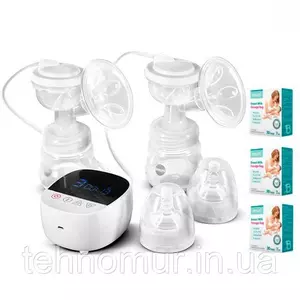 Электрический двойной двухфазный молокоотсос Bebumi BD1 (white) с силиконовой соской + пакеты для молока
