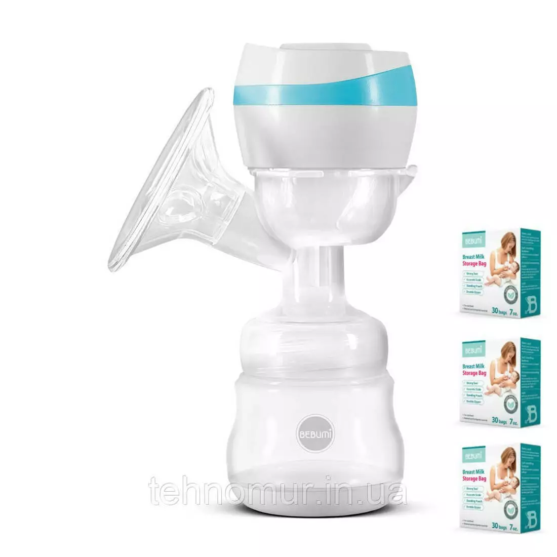 Электрический двухфазный молокоотсос Bebumi BS1 (blue) с силиконовой соской + пакеты для хранения молока