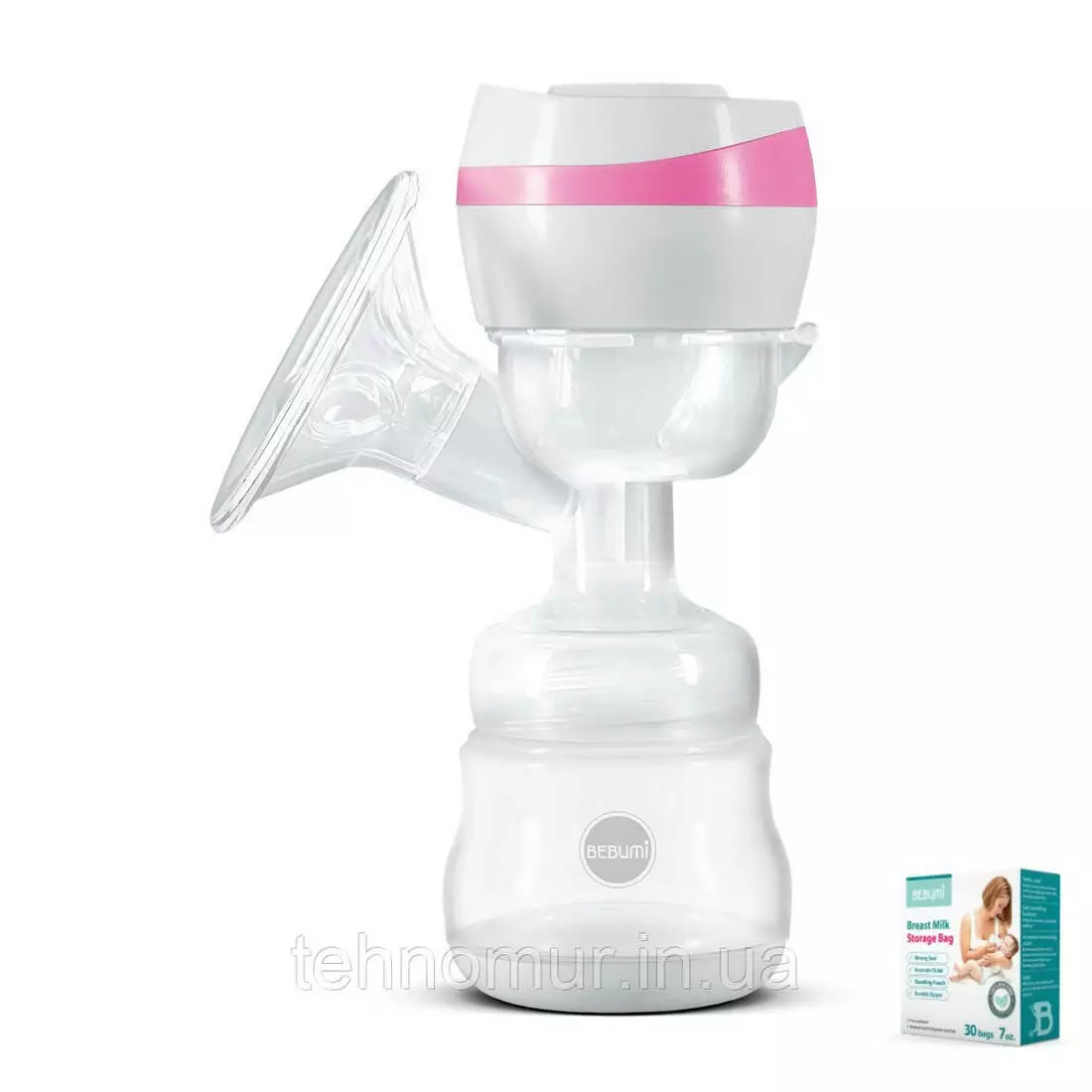 Электрический двухфазный молокоотсос Bebumi BS1 (pink) с силиконовой соской + пакеты для хранения молока