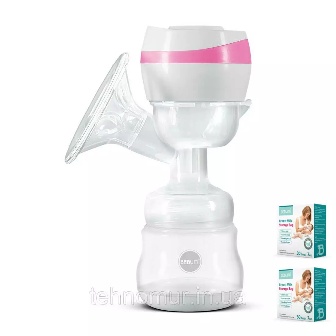 Электрический двухфазный молокоотсос Bebumi BS1 (pink) с силиконовой соской + пакеты для хранения молока
