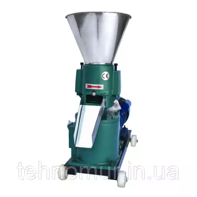 Гранулятор используется для переработки круп и кормов в мелкие гранулы, он очень полезен и даже необходим любому фермеру, но также и в каждом доме. Двигатель мощностью 3 кВт, 1500 об/мин. Передача мощности осуществляется через редуктор. Рабочее оборудование состоит из матрицы и роликов. При вводе гранулятора в работу ролики будут вдавливать сырье для грануляции в отверстия матрицы (они могут быть разных размеров: 2,5 мм, 3 мм, 4 мм, 6 мм, 8 мм). В результате действия силы трения во время процесса гранулирования регистрируется температура между 30-60 градусами Цельсия. Таким образом, зерновые и корм перерабатываются и превращаются в гранулы, которыми можно кормить кроликов, птиц, овец, крупный рогатый скот, свиней, рыбу.