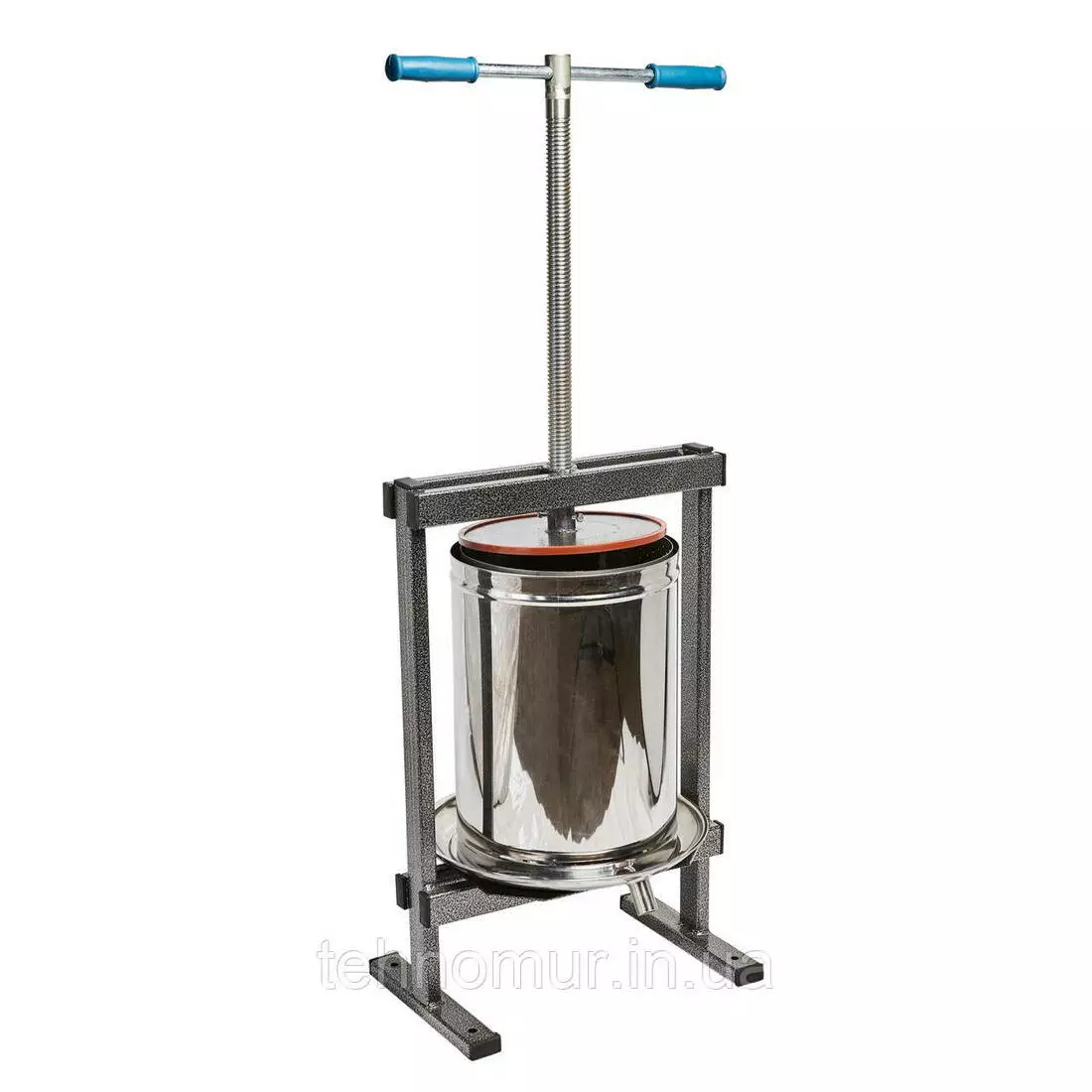 Пресс состоит из винтового пресса, корпуса и тарелки. В работу приводится путем вращения винта вручную. Все элементы, которые контактируют с продукцией и соком, сделаны из пищевой нержавеющей стали, которая не поддается коррозии, а значит - сок получается самого высокого качества ,который идеально подойдут не только для консервации, но и для вина. Каркас, на который крепится конструкция, сделан из надежного материала, что придает конструкции дополнительную прочность. В подставке корпуса есть отверстия, за счет которых возможно надежно фиксировать пресс.
