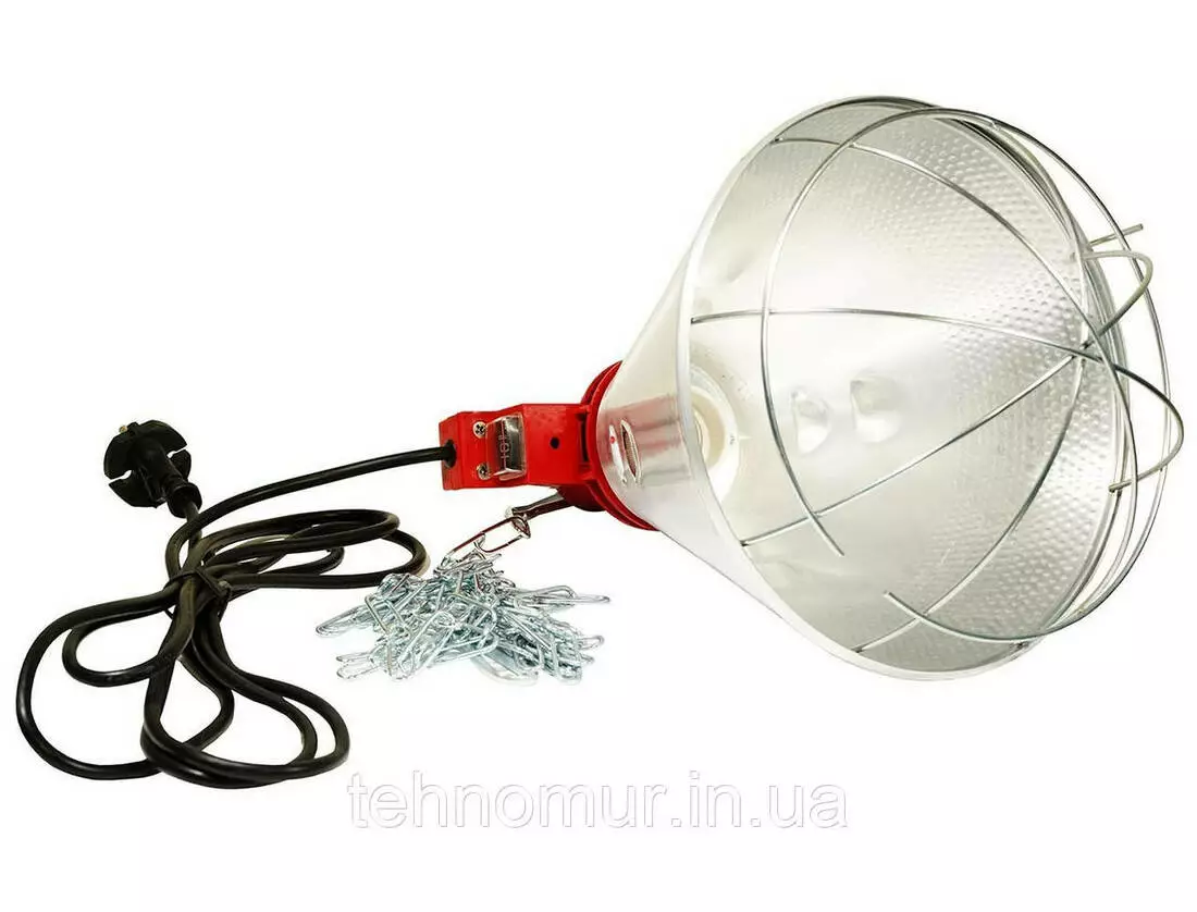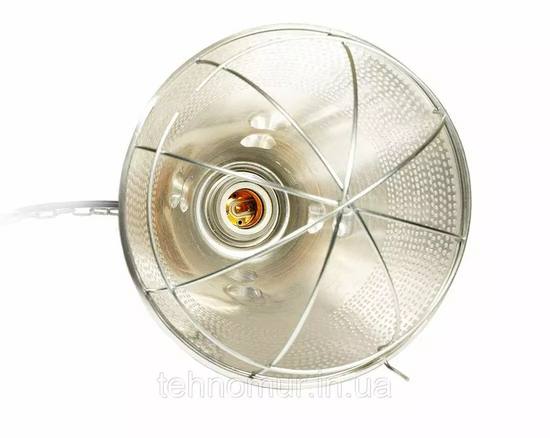 Плафон и его комплектующие:Металлический отражатель для инфракрасной лампы;Защитная сетка;Патрон E27 керамический в металлическом корпусе;Кабель с вилкой;