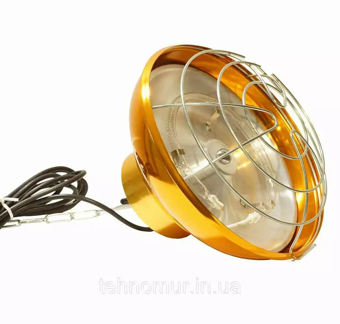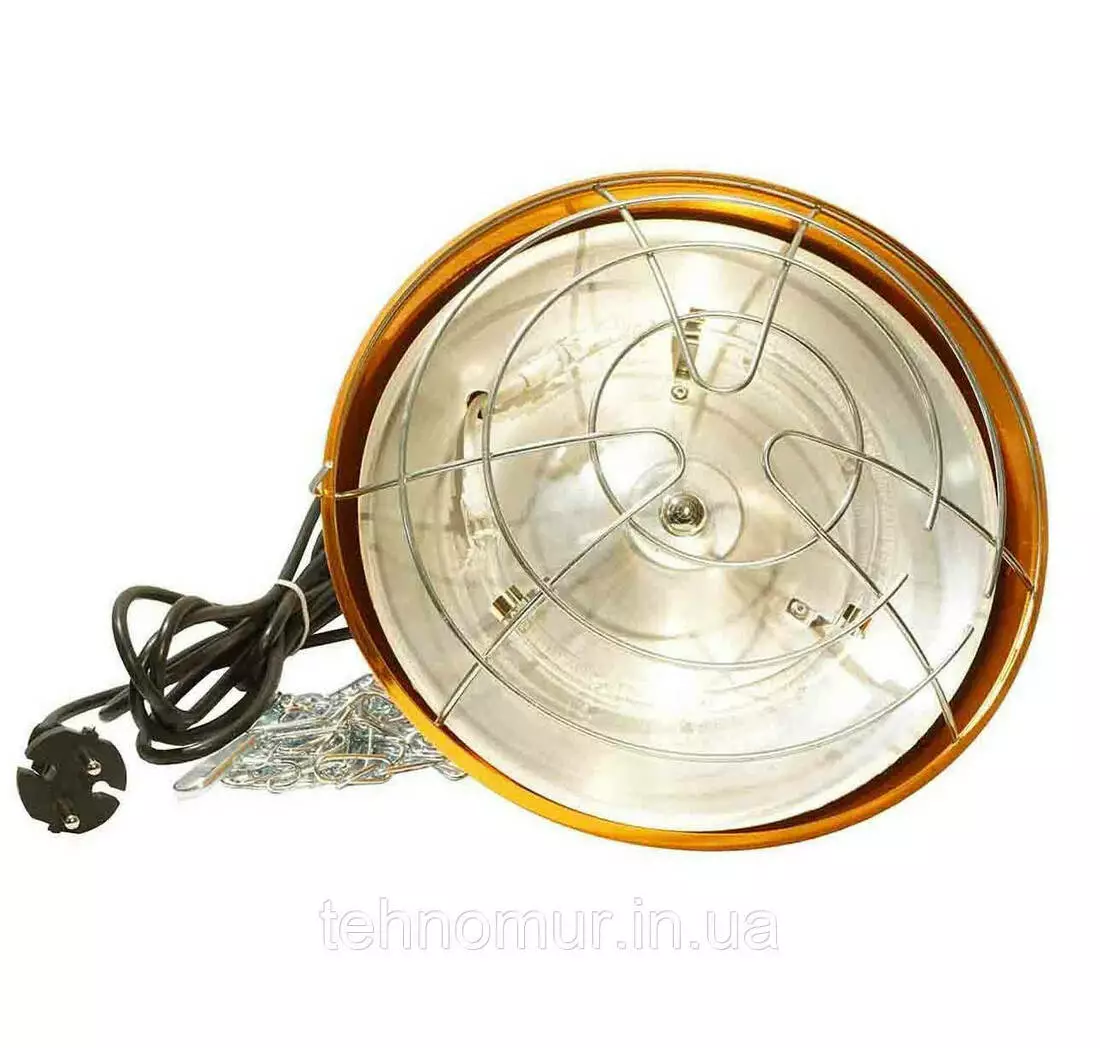 Плафон и его комплектующие:Металлический отражатель для инфракрасной лампы;Защитная сетка;Патрон E27 керамический в металлическом корпусе;Кабель с вилкой;