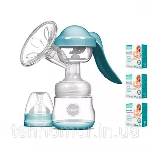 Ручной молокоотсос Bebumi BM Pro (blue) + силиконовая массажная насадка + пакеты для хранения грудного молока