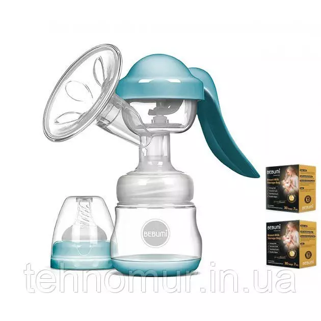 Ручной молокоотсос Bebumi BM Pro (blue) + силиконовая массажная насадка + пакеты для хранения грудного молока