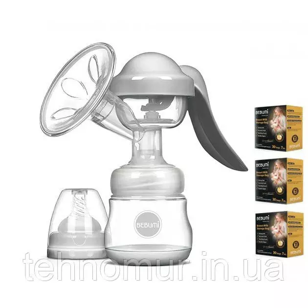 Ручной молокоотсос Bebumi BM Pro (white) + силиконовая массажная насадка + пакеты для хранения грудного молока