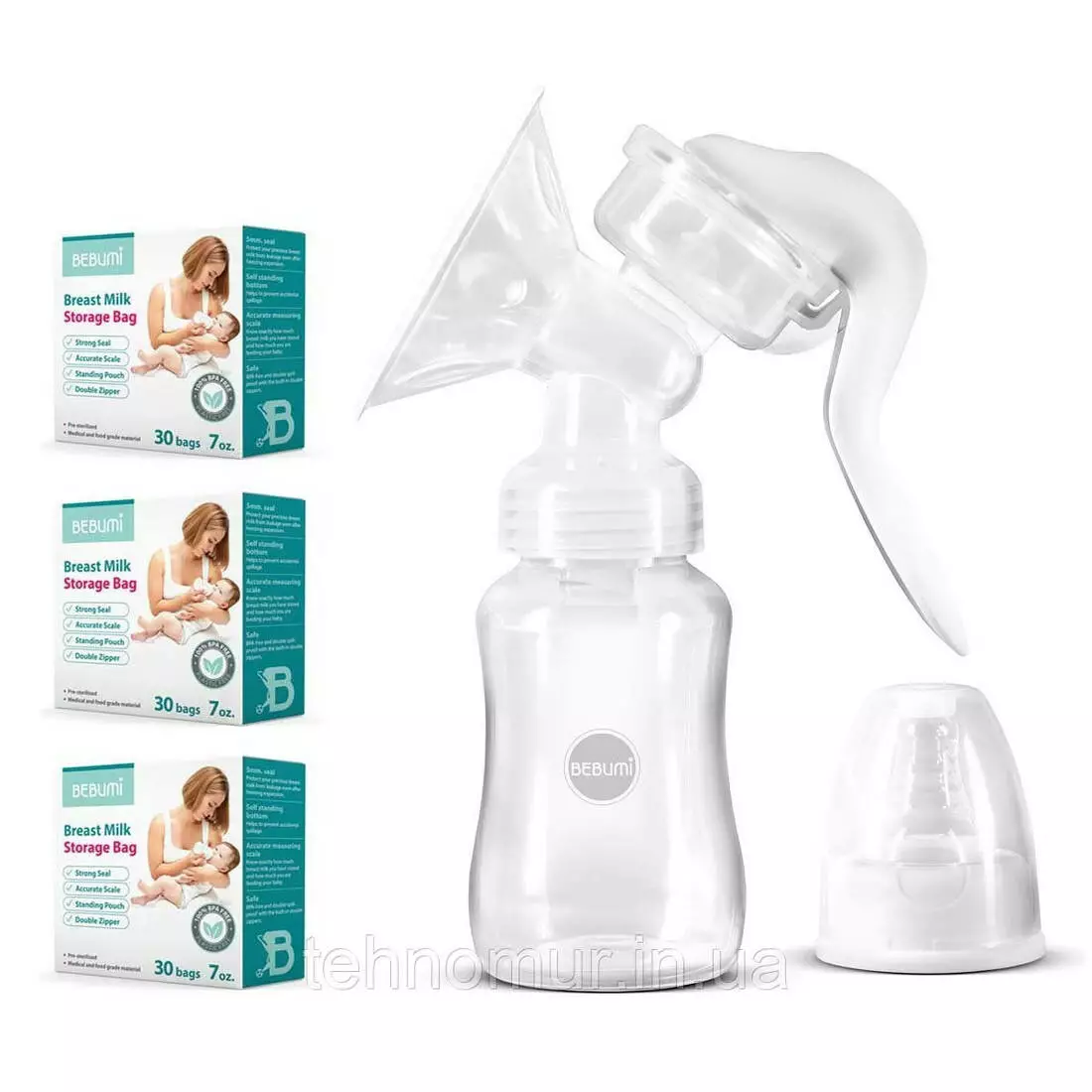 Ручной молокоотсос Bebumi BM1 + пакеты для хранения грудного молока Bebumi 90 штук