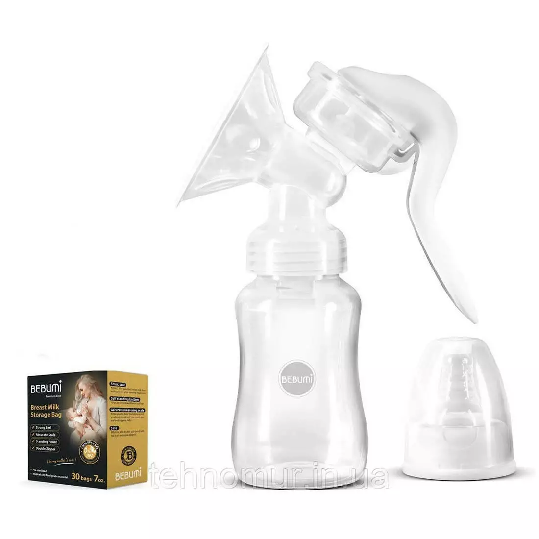 Ручной молокоотсос Bebumi BM1 + пакеты для хранения грудного молока Bebumi Pro 30 штук