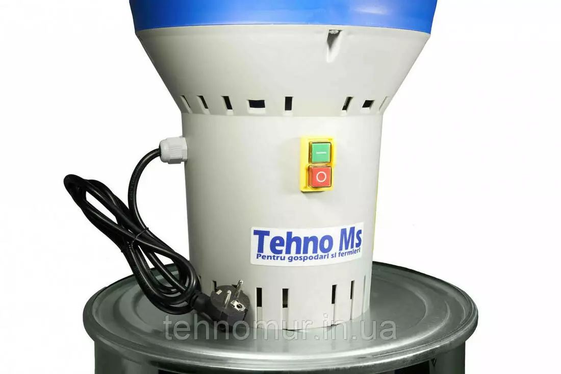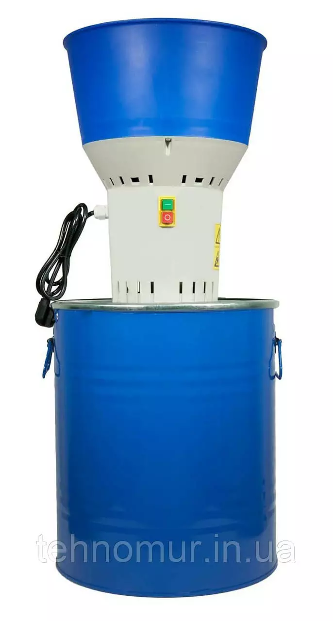 Зернодробилка имеет простую и надежную конструкцию, очень легка в использовании. Вам нужно только установить рабочую часть с двигателем на контейнер и загрузить сырье в бункер. Перемолотый продукт автоматически выпадает в контейнер.